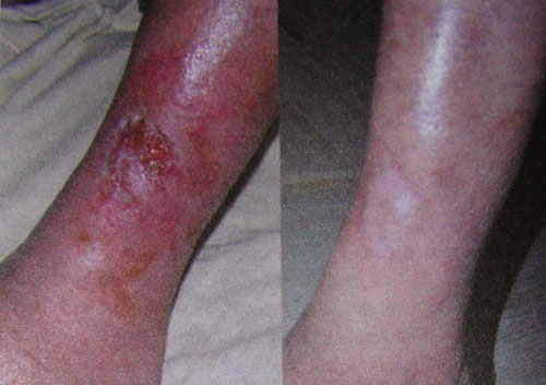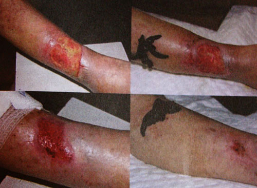 Cztery kolejnen etapy gojenia owrzodzenia z użyciem pijawek. Rana 5-cio letnia wygojona w 2 miesiące
